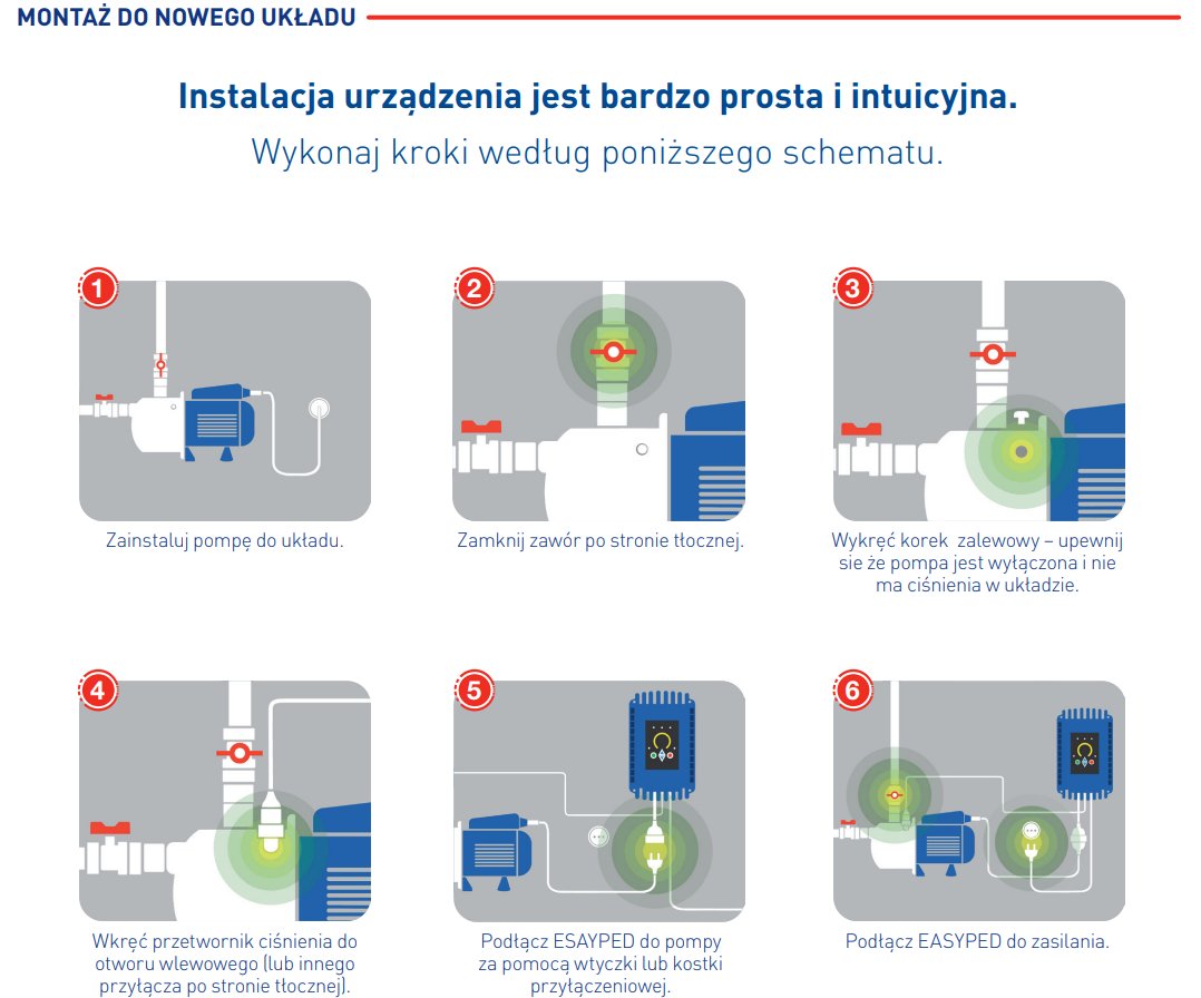 Inwertery EasyPed® zastępują wszystkie tradycyjne układy takie jak wyłącznik ciśnieniowy czy wyłącznik przepływowy.