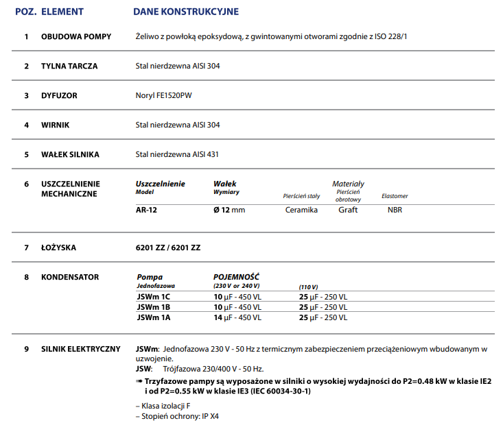 Nadaje się do stosowania z wodą do picia oraz z cieczami, które nie są chemicznie agresywne w stosunku do materiałów, z których wykonano pompę. Samozasysające pompy JSW są zaprojektowane do pompowania wody nawet w przypadku obecności powietrza. Ze względu na ich niezawodność i łatwość użycia, zaleca się je do zastosowań domowych, takich jak dystrybucja wody w połączeniu z małymi lub średnimi zbiornikami ciśnieniowymi, oraz do nawadniania ogrodów i sadów itp.