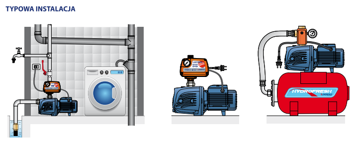 Zastosowania: pompy irygacyjne, systemy mycia, systemy zaopatrzenia w wodę, przesyłanie cieczy, zestawy przeciwpożarowe, systemy ciśnieniowe
