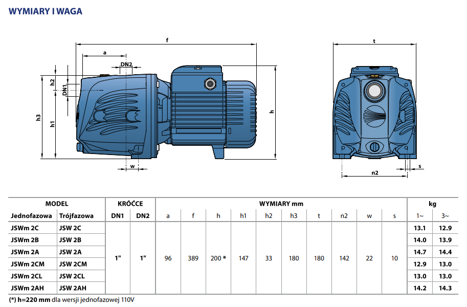 Wysokość ssania do 9 m (HS)