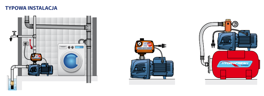 Zastosowania: pompy irygacyjne, systemy mycia, systemy zaopatrzenia w wodę, przesyłanie cieczy, zestawy przeciwpożarowe, systemy ciśnieniowe