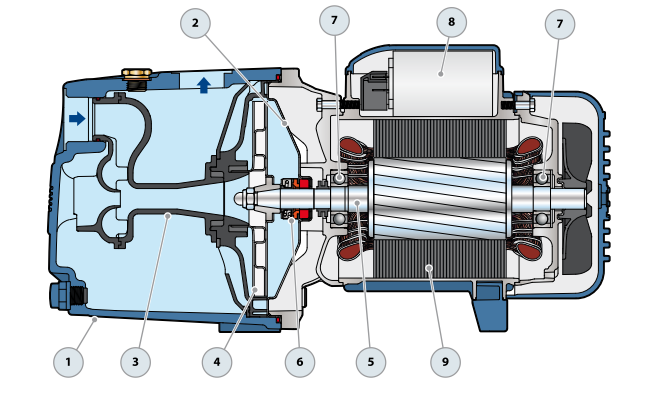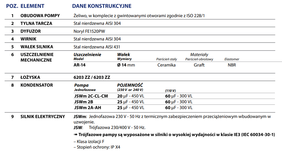 Odpowiedni do stosowania z do wody czystymi i płynami, które nie są chemicznie agresywne w stosunku do materiałów, z których wykonano pompę. Samozasysające pompy JSW są zaprojektowane do pompowania wody nawet w przypadku obecności powietrza. Ze względu na ich niezawodność i łatwość użycia, zaleca się je do zastosowań domowych, takich jak dystrybucja wody w połączeniu z małymi lub średnimi zbiornikami ciśnieniowymi, oraz do nawadniania ogrodów i sadów itp.