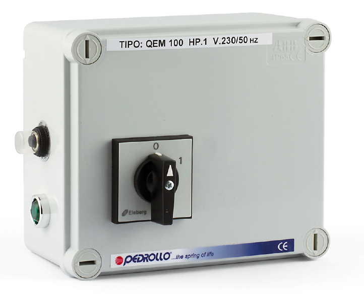 Pilot jest dostarczany w obudowie wykonanej z samogasnącego tworzywa termoplastycznego, który chroni pompę elektryczną odwiertu przed przeciążeniem i zwarciem. Zaprojektowany do podłączenia wyłącznika pływakowego (lub przełącznika ciśnienia itp.)