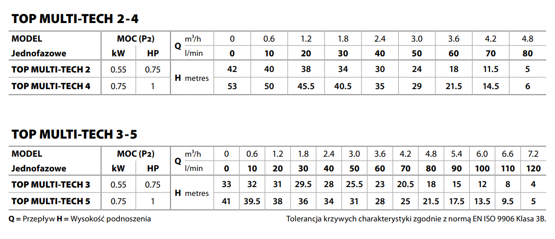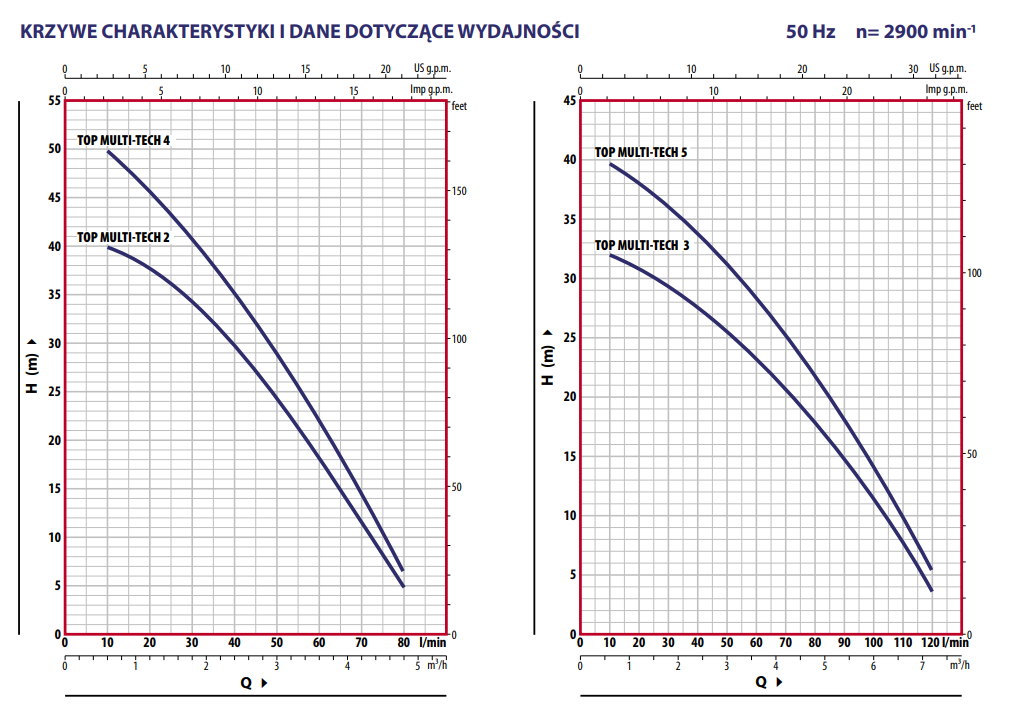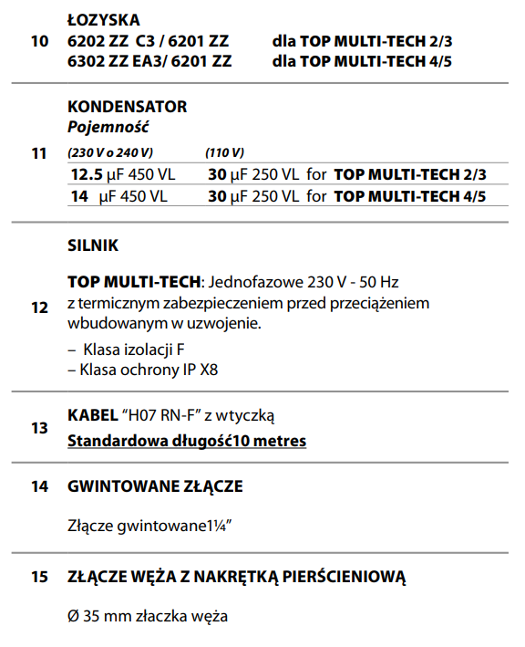 Pompy TOP-MULTI-TECH są zalecane do pompowania do czystej wody i cieczy, które nie są chemicznie agresywne dla materiałów, z których wykonana jest pompa.