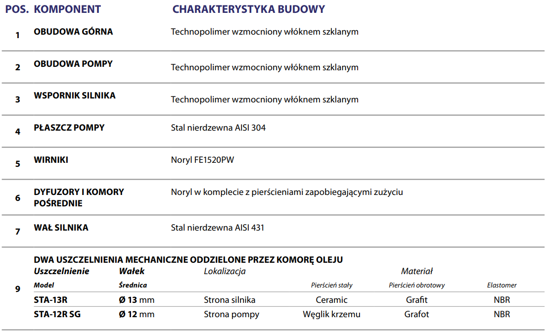 Zastosowania: systemy zaopatrzenia w wodę, systemy ciśnieniowe, pompy irygacyjne