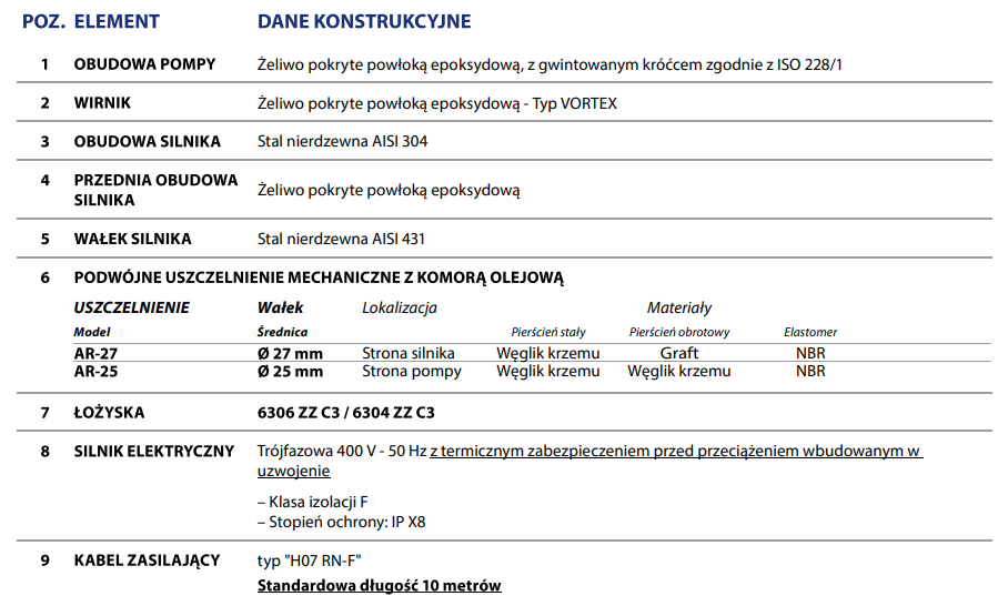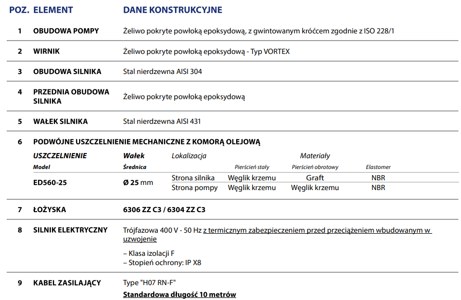 Zastosowania: opróżnianie zbiorników, drenaż, brudna woda - lekko stałe cząstki