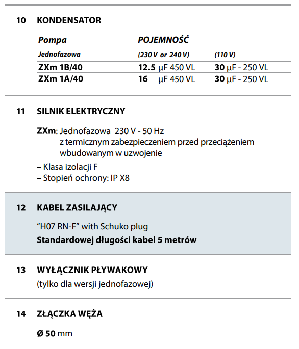 Pompa jednofazowe bez pływaka