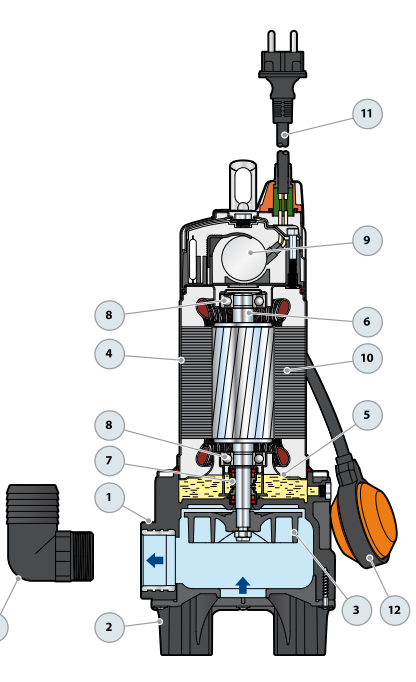 ZX2 Pompy serii nadają się do pompowania brudnej wody w zastosowaniach domowych i budownictwie oraz do pompowania brudnej wody zawierającej zawiesinę ciał stałych do Ø 40 mm. Wyróżniają się łatwością, z jaką są instalowane oraz niezawodnością w automatycznych warunkach pracy w instalacjach stałych.