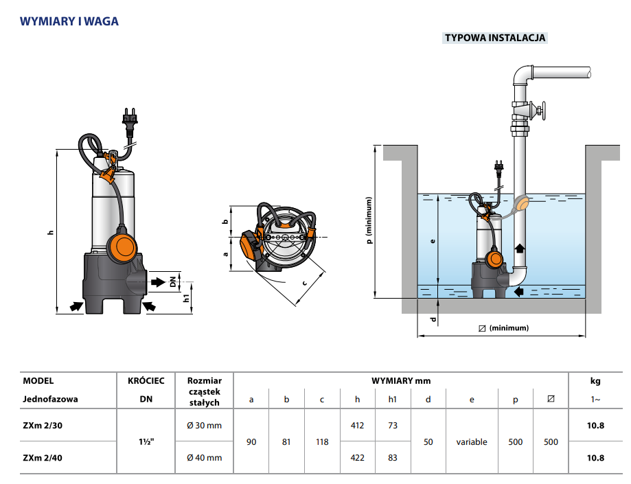 Zastosowania: opróżnianie zbiorników, drenaż, brudna woda -